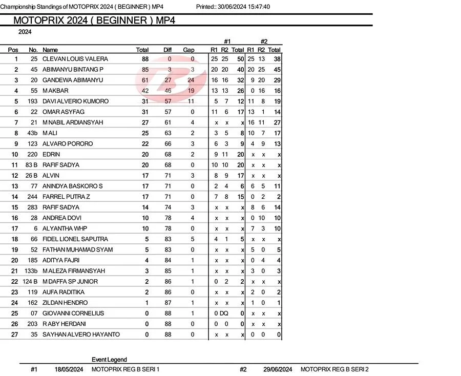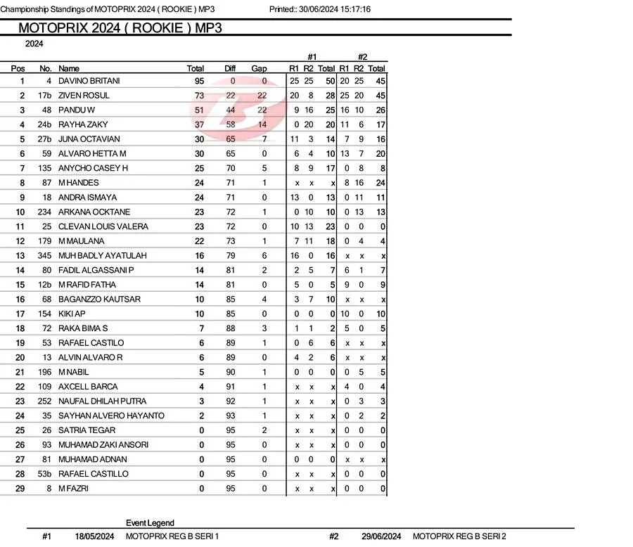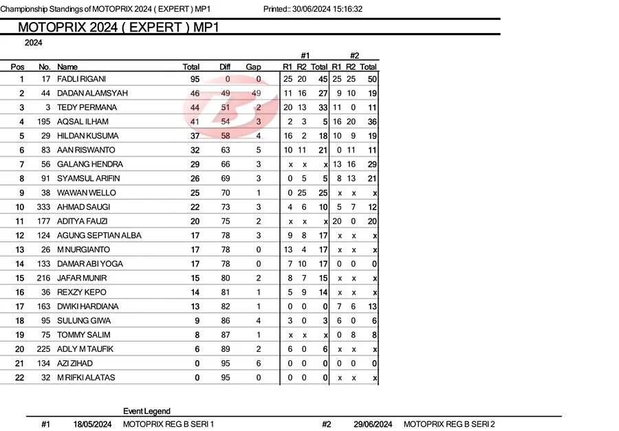 BalapMotor.Net – Kejuaraan Nasional Motoprix Region B tahun 2024 telah menyelesaikan dua putaran. Dimana seri pertama di Subang dan kedua di Tasikmalaya yang berlangsung pekan kemarin.