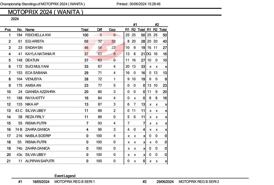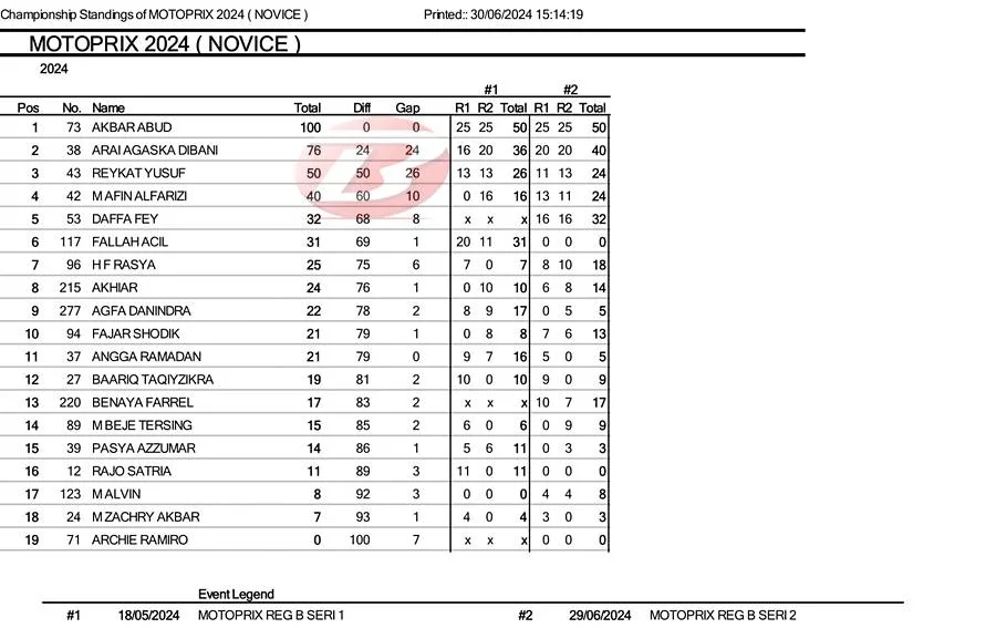 Nah, berikut data poin klasemen sementara kelas Kejurnas setelah menjalani 4 race. (***)