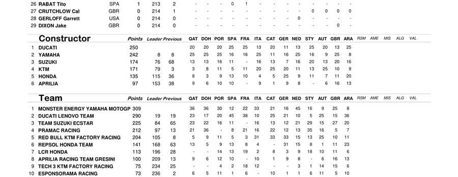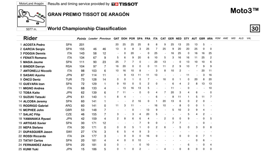 BalapMotor.Net – Berikut kami paparkan klasemen sementara MotoGP, Moto2 dan Moto3 setelah putaran ke-13 Grand Prix Spanyol yang berlangsung di sirkuit MotorLand Aragon Minggu, 12 September 2021.