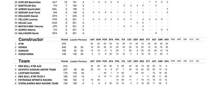 Update Klasemen Moto3, Moto2 & MotoGP 2021 Setelah Aragon