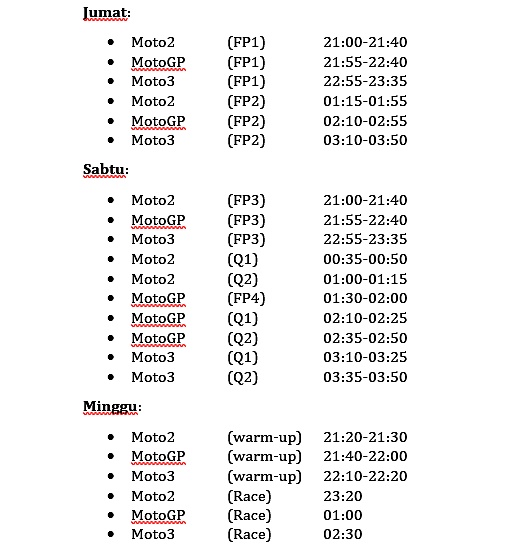 Pada kesempatan kali ini akan ada perubahan jadwal race. Kalau sebelumnya Moto3 dahulu baru Moto2 dan MotoGP, pada balap Amerika ini Moto3 justru akan dipentaskan paling terakhir setelah Moto2 dan MotoGP.
