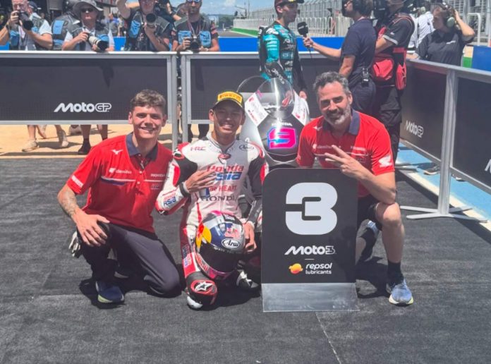 BalapMotor.Net – Veda Ega Pratama,pembalap 17 tahun asal Gunungkidul, DIY berhasil mencatatkan sejarah menjadi pembalap Indonesia pertama yang meraih podium di ajang MotoGP. Veda berhasil meraih podium ketiga dalam race Moto3 GP Brazil.