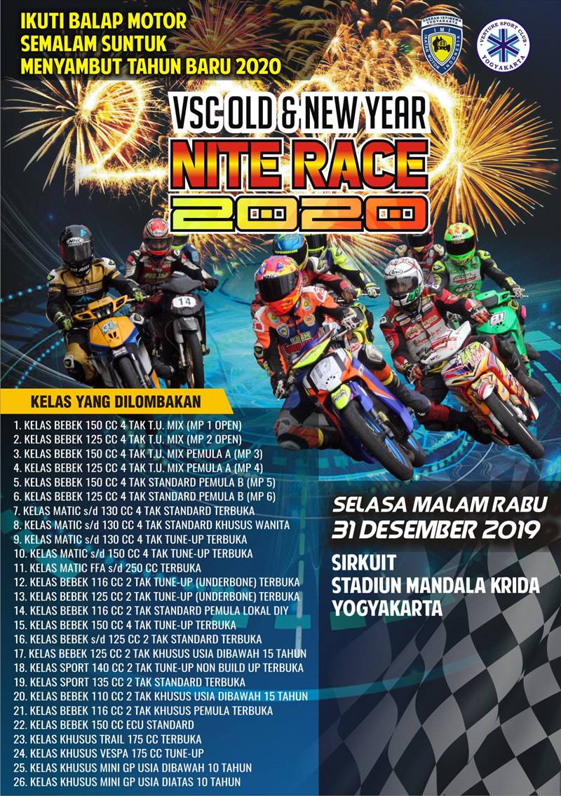 BalapMotor.Net – Jelang bergulirnya event tahunan VSC Old & New Year Nite Race 2020, beberapa tim memastikan diri akan hadir dan meramaikan balap yang digelar di sirkuit NP. legendaris Stadion Mandala Krida ini.