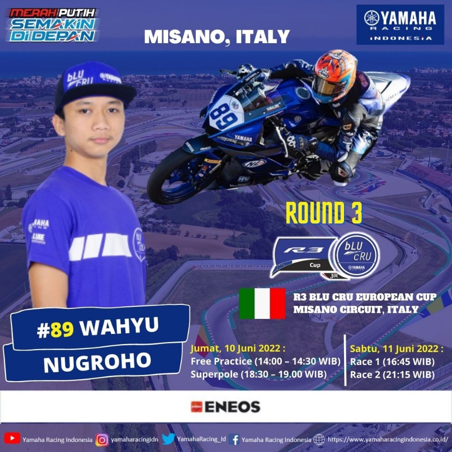 BalapMotor.Net – Wahyu Nugroho siap tampil di Yamaha R3 bLU cRU European Cup Seri Ke-3 yang akan berlangsung di Misano World Circuit “Marco Simoncelli”, Riviera Di Rimini, Italia akhir pekan ini (10-11 Juni 2022).