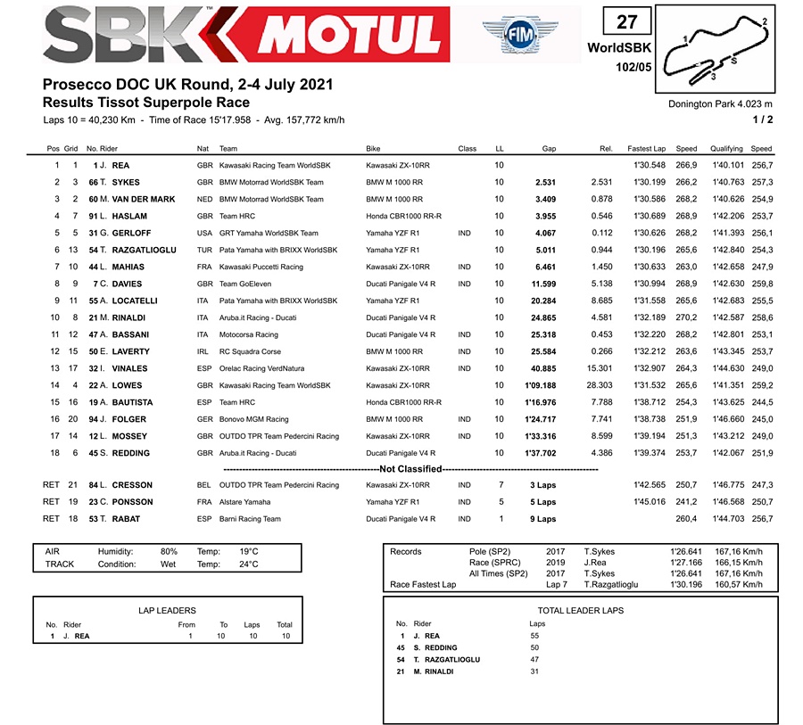 Jalannya balapan Superpole Race di sirkuit Danington Park, Inggris sendiri berlangsung dalam kondisi yang sulit. Sesaat sebelum start dimulai, hujan turun. Tapi tak berlangsung lama aspal sirkuit kembali mengering.