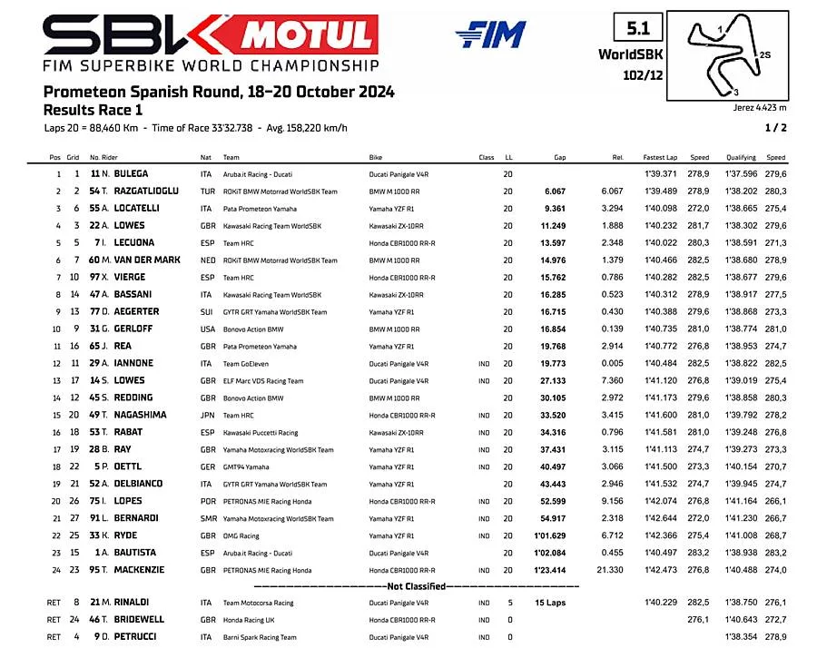 Hasil Race 1 dan Klasemen WorldSBK 2024: