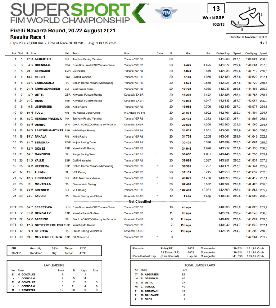 Berikut hasil Race 1 WorldSSP Navarra – Spanyol 2021: