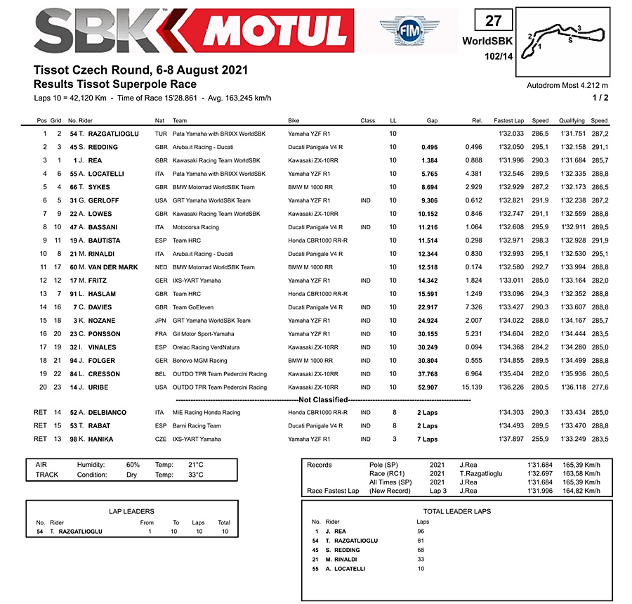Berikut hasil Superpole Race WorldSBK Most –Ceko 2021: