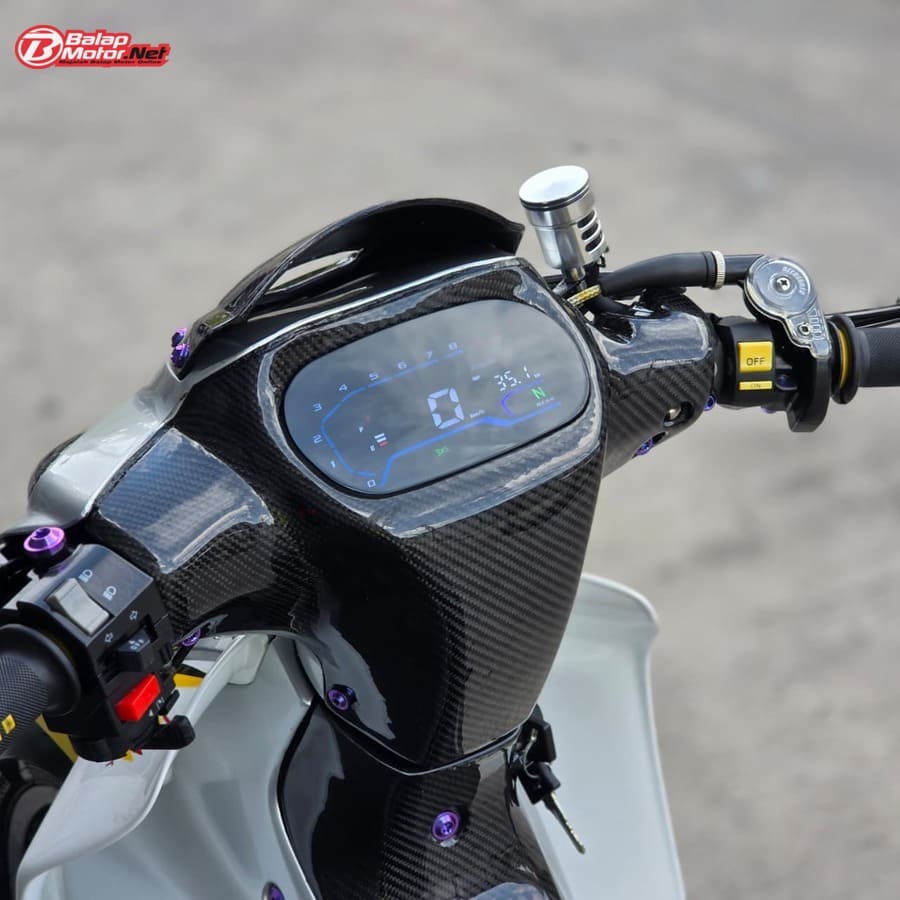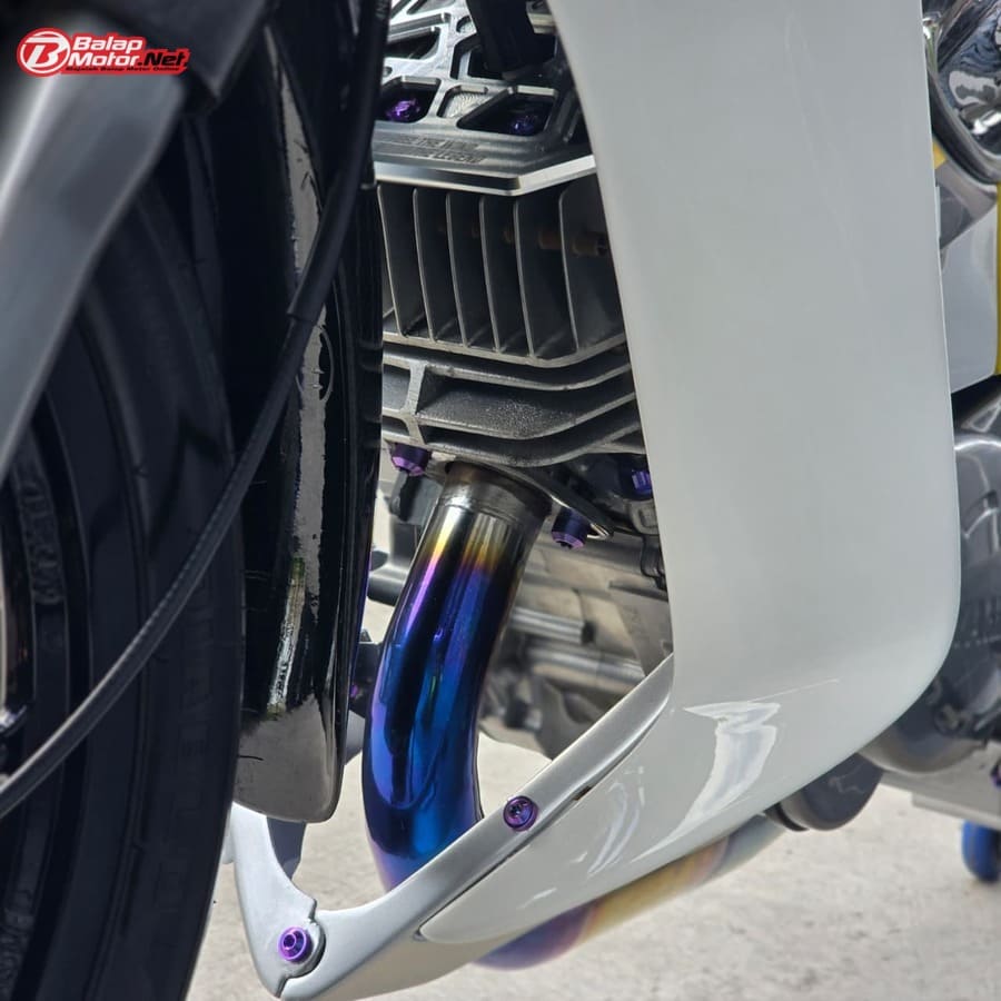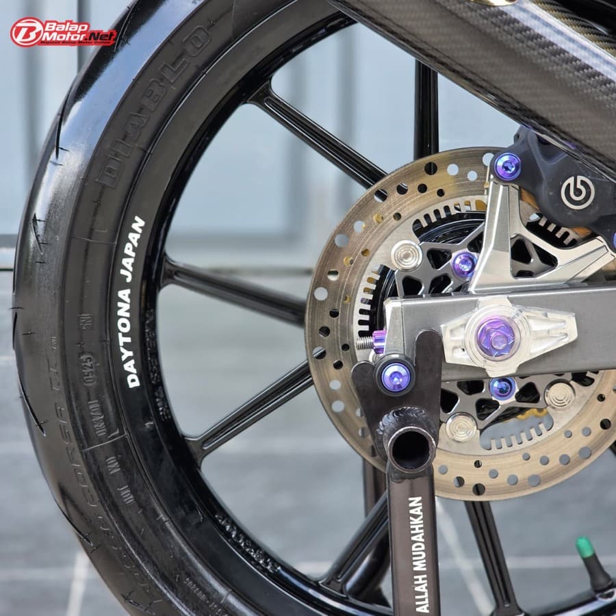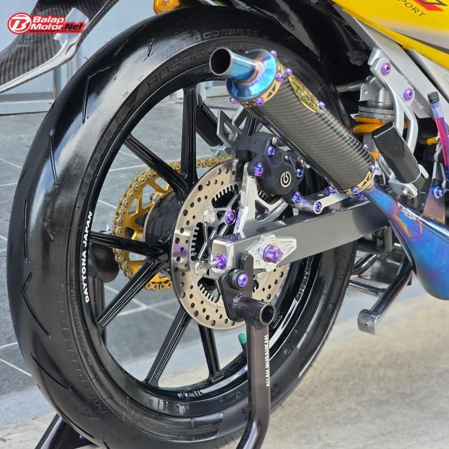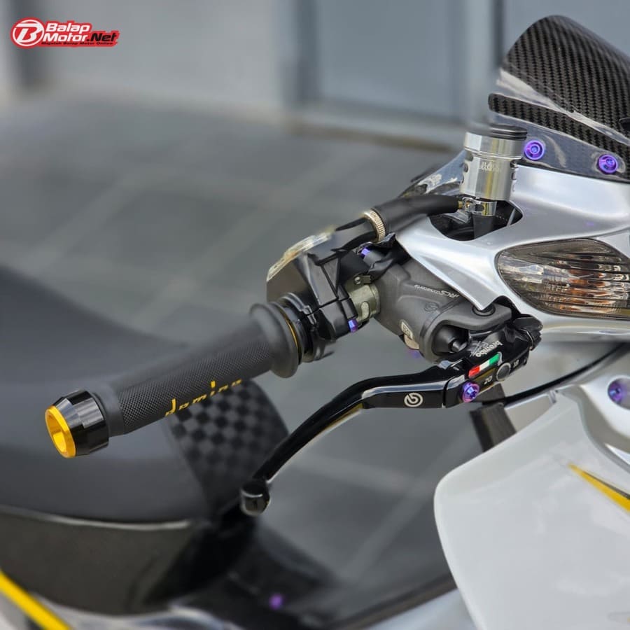 Masuk ke sektor teknis, spesifikasi Yamaha 125Z ini terbilang kelas atas. Mesin menggunakan blok OS 100 Seri Y Japan dengan sentuhan porting polish, dipadukan chamber SRS bluemoon titanium color serta detail silikon SRS carbon dan baut titanium. Kaki-kaki juga tak main-main, mulai dari velg Daytona GP Wheel Japan original, shock belakang Öhlins original, hingga sistem pengereman premium seperti kaliper Brembo radial monobloc M4 P32 di depan dan Brembo axial 2P di belakang, lengkap dengan piringan floating Mutakin 300 mm.