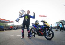 BalapMotor.Net – Tim asal Kabupaten Berau, Kalimantan Timur yaitu Yamaha Yamalube Aditama STSJ NHK IRC RCB DID GDT Racing membuktikan konsistensinya di musim balap 2018. Setelah mendapatkan support dari pabrikan Yamaha, tim dibawah asuhan Juniar Rizal ini terbukti mengikuti seluruh gelaran Kejurnas Motoprix Region IV Kalimantan dan juga Grand Final Kejurnas Motoprix 2018 yang berlangsung di Surabaya (17-18/11).