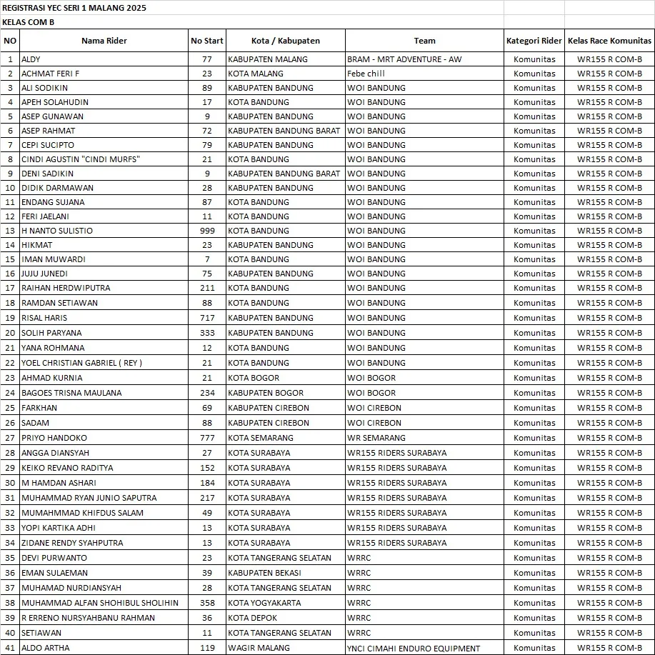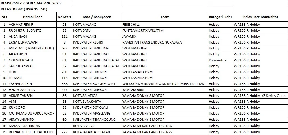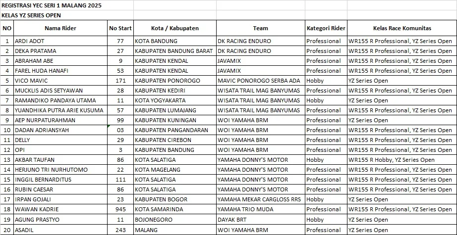 Tidak ketinggalan nama-nama seperti Delly dan Opi dari WOI Yamaha BRM, serta Muhammad Daffa Efendi (Yamaha Mekar Motor Cargloss RRS), dan Wawan Kadrie dari Samarinda yang mewakili tim Yamaha Trio Muda.