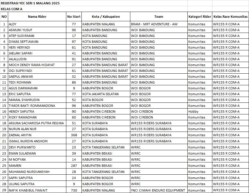 BalapMotor.Net – Gelaran Shell BLU CRU Yamaha Enduro Challenge (YEC) Seri 1 2025 sukses digelar meriah di lintasan Jalibar, Oro-Oro Ombo, Kota Batu, Jawa Timur, pada 24-25 Mei 2025. Event bergengsi ini mencatatkan sejarah dengan rekor jumlah peserta terbanyak dalam sejarah YEC, yaitu 158 starter, sekaligus menjadi pembuka musim yang luar biasa.