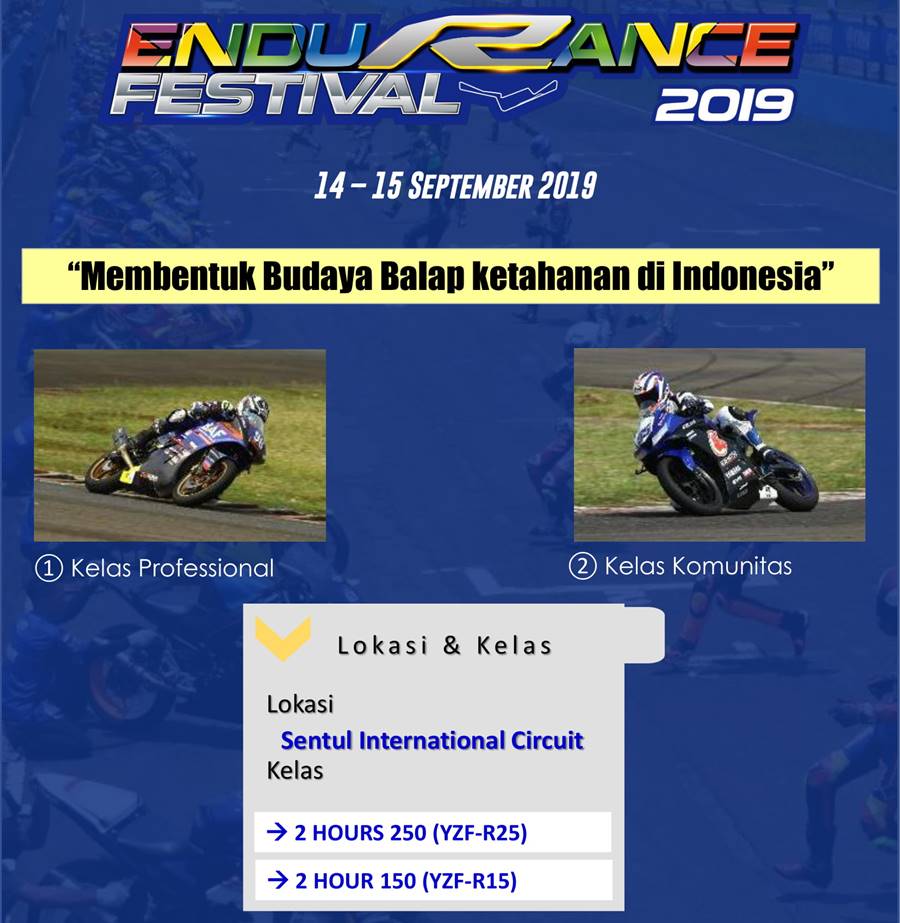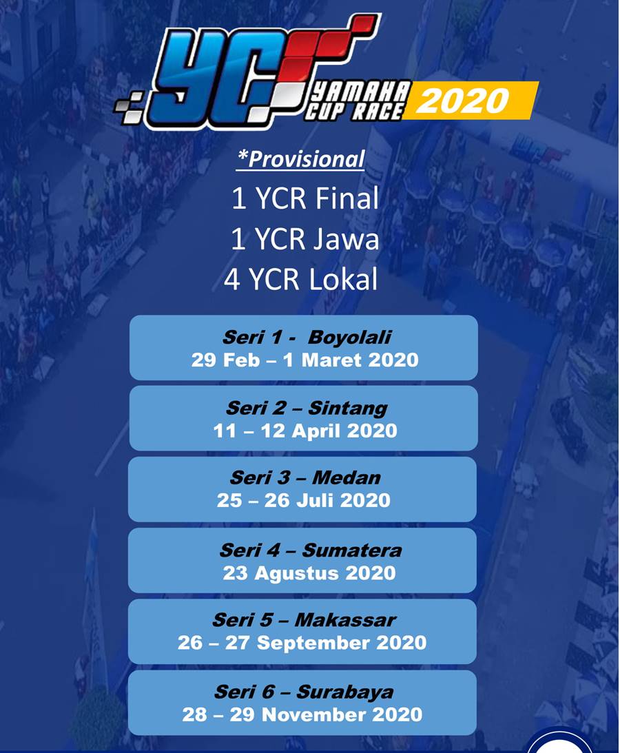 Jika sebelumnya bocoran jadwal OMR Yamaha baik Yamaha Cup Race (YCR), Yamaha Sunday Race (YSR) dan Yamaha Endurance Festival (YEF) sudah pernah dinaikan di portal ini, tetapi waktu itu hanya tanggalnya saja.