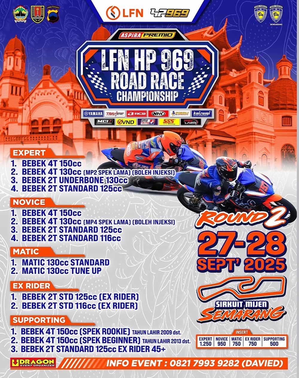 BalapMotor.Net – Gelaran LFNHP969 Road Race Championship 2025 Round-2 di Sirkuit Mijen, Semarang (27–28 Oktober 2025) dipastikan makin panas. Salah satu tim asal Jawa Tengah, YR Tolak Miskin Racing Team, siap tampil dengan kekuatan penuh dan siap memanaskan pertarungan di kategori Exrider.